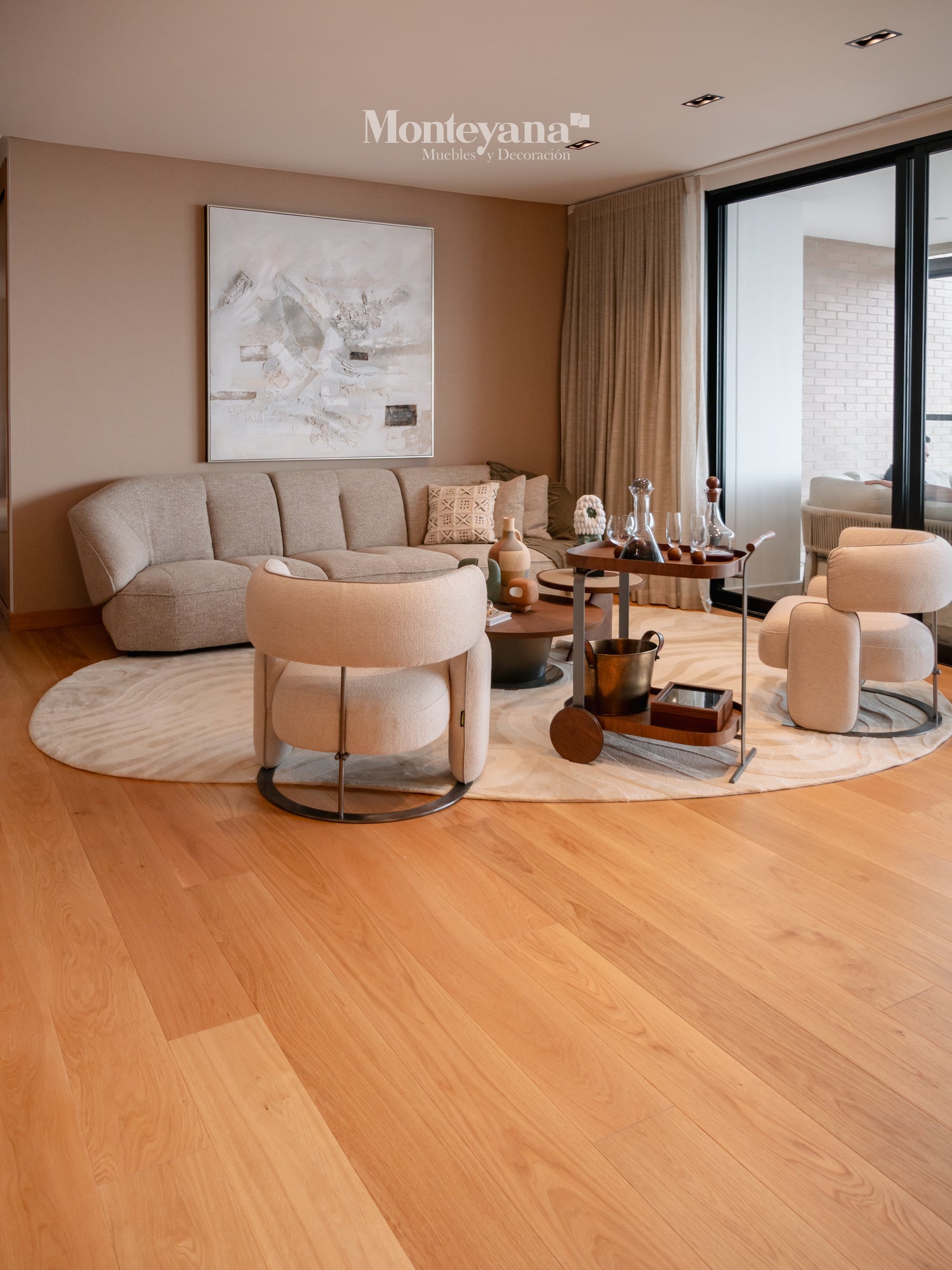 Nuestras estructuras principales están hechas en madera maciza de Roble. Utilizamos textiles de alto tráfico con tecnologías antifluido, espumas de alta densidad para garantizar confort a largo plazo y acabados premium como acero inoxidable, fibra de vidrio, mármol y cueros seleccionados.
