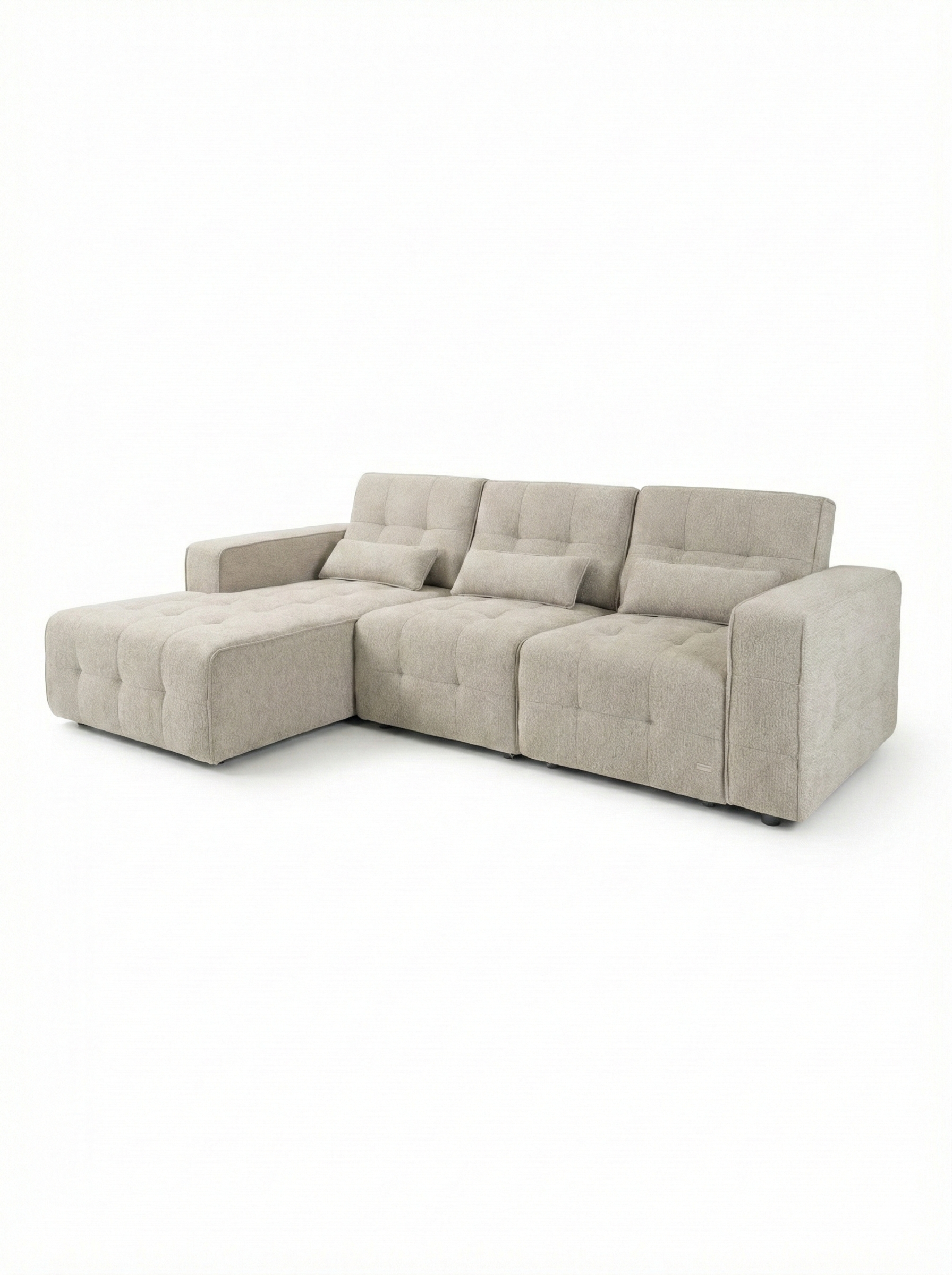 Un conjunto premium en tonos crudo y gris que combina tacto acogedor con máxima resistencia.